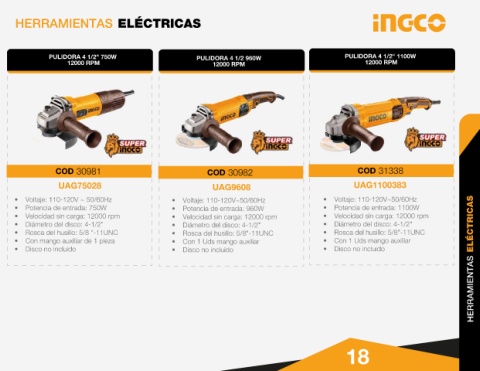 PULIDORA 4 1/2" 750W PULIDORA 4 1/2 960W PULIDORA 4 1/2" 1100W