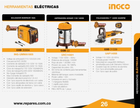 SOLDADOR INVERSOR 160A ASPIRADORA HOGAR 110V 1400W POLICHADORA 7" 1400W 4500RPM