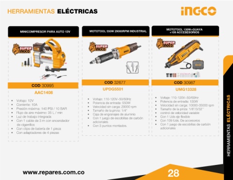 MINICOMPRESOR PARA AUTO 12V MOTOTOOL 550W 29000RPM INDUSTRIAL +109 ACCESESORIOS