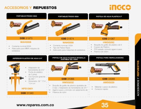 PORTAELECTRODO 300A PORTAELECTRODO 500A PISTOLA DE AGUA PLASTICA 9”