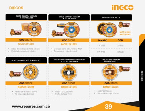 • Ancho de la hoja: 7.5 mm • 115(4-1/2")X22.2mm • 180(7")X22.2mm