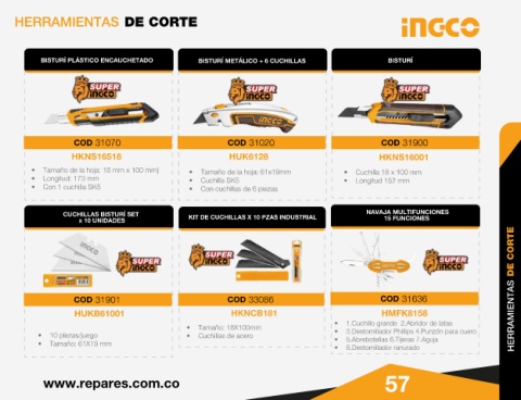 COD 31901 COD 33086 COD 31636 HERRAMIENTAS DE CORTE